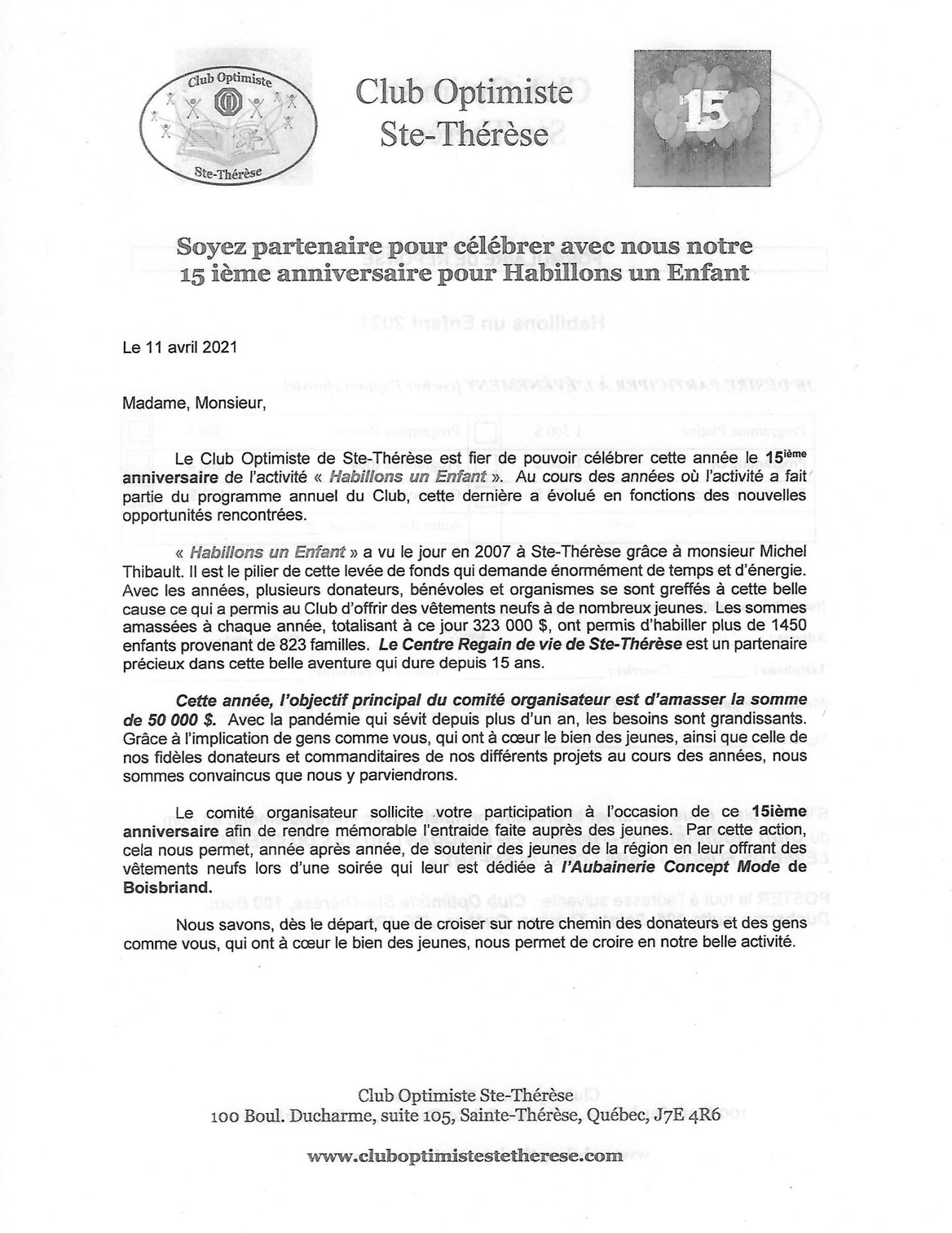 Campagne de financement Tous Unis pour Regain de vie 2021